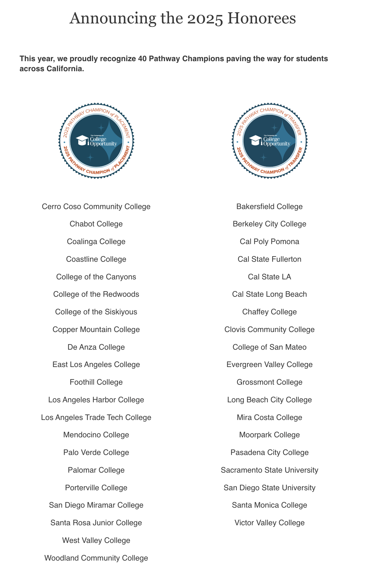 Coastline College is honored to be recognized by The Campaign for College Opportunity as one of only twenty-one California Community Colleges and California State Universities named a 2025 Pathway Champion of Placement.